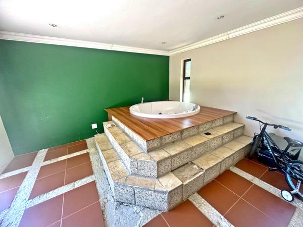 For those who love to host or unwind, the additional entertainment room features a built-in jacuzzi, creating the perfect setting for relaxation and fun-filled gatherings. Upstairs, a cozy pajama lounge complements five generously sized bedrooms. One of the bedrooms, conveniently located downstairs, is currently used as a study, offering versatility. The luxurious main bedroom boasts an en-suite bathroom, while a second shared bathroom serves the rest of the house with ease.