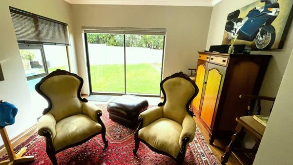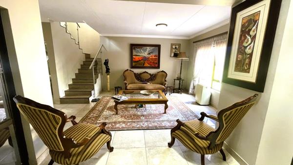Upstairs, the main bedroom is magnificent, featuring a spacious walk-in cupboard and an exquisite private bathroom which offers style and functionality. Also a huge walk-in cupboard and a private balcony, ideal for unwinding and enjoying the views. Additionally, 2 well-sized bedrooms share a modern bathroom, ensuring comfort and privacy for all family members. The house also offers 3 garages, beautiful garden with sprinkler system, solar system, outside toilet and loads of parking.