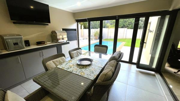 This stunning home, nestled in the secure Woodland Hills Wildlife Estate, offers the perfect balance of luxury, comfort and modern design. Downstairs is an expansive area, that boasts 4 distinct living areas, providing plenty of space for relaxation, entertainment or family time. One of the standout features of the home is the elegant braai room, which opens up through stack doors to the pristine pool area, creating a seamless indoor-outdoor flow, ideal for casual gatherings and more formal events. The kichen is a materpiece in modern design, featuring sleek finishes, high end appliances and an adjacent scullery.