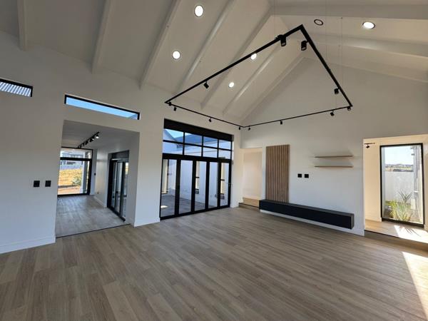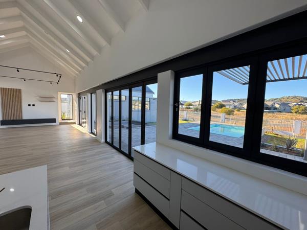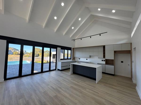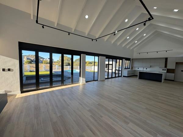 The home features four generously sized bedrooms, perfect for family living or hosting guests. The heart of the home is the stunning open-plan kitchen, designed to inspire culinary creativity and seamlessly flow into the living areas that open up to the swimming pool, fire-pit, garden and beautiful nature vistas. The well-designed study has a private entrance if you need to accommodate clients, but do not want them to go into the house. A mezzanine floor can be added in the double-volume garage (this will be at an extra cost, but the developers are willing to make some changes to suit the buyer''s needs).