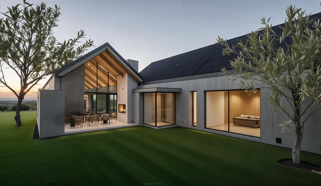 This modern residence features four generously sized bedrooms and three beautifully appointed bathrooms, including two luxurious en-suites. The open-plan layout seamlessly integrates the living, dining, and kitchen areas beneath dramatic double-volume ceilings with striking exposed wooden beamscreating an airy, light-filled atmosphere. High-end finishes throughout the home provide a touch of sophistication and style.