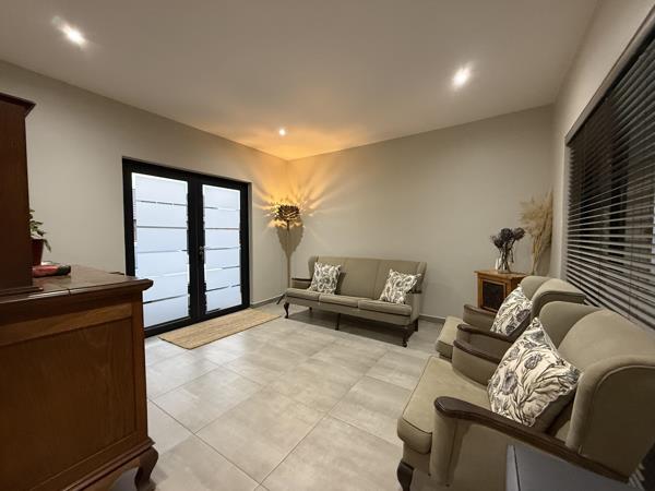 This home features three spacious, tiled bedrooms with built-in cupboards, blinds, and remote-controlled ceiling fans. The luxurious main bedroom offers a tranquil escape with a full en suite bathroom and double vanity.