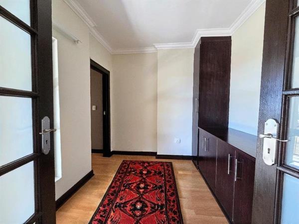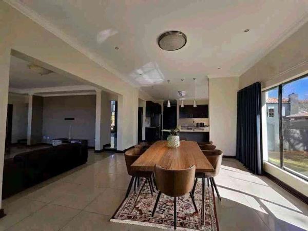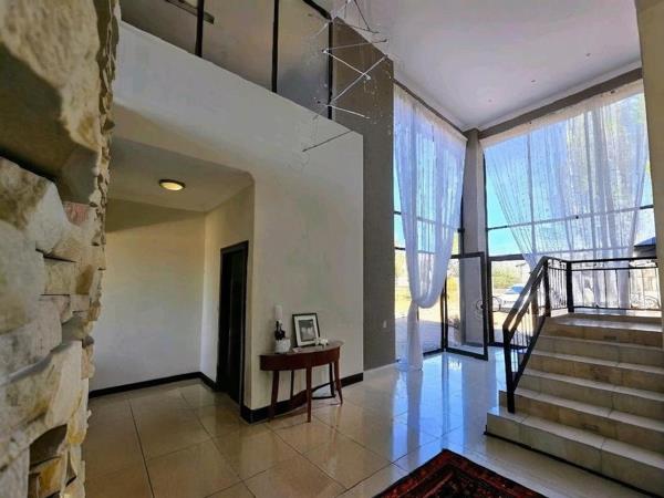 ?The house boasts a grand entrance with a double-volume ceiling and a striking sandstone feature wall. The driveway provides ample parking, in addition to two double garages. The main living area features an open-plan lounge and dining room, which flows seamlessly into a spacious kitchen complete with a separate pantry and laundry room that connects to the garages. A dedicated cinema room, equipped with a screen and projector, provides the perfect space for entertainment. A convenient guest bathroom with a toilet, shower, and basin is also located on this level. Throughout the downstairs area, classic ceramic porcelain tiles enhance the elegant feel of the home.