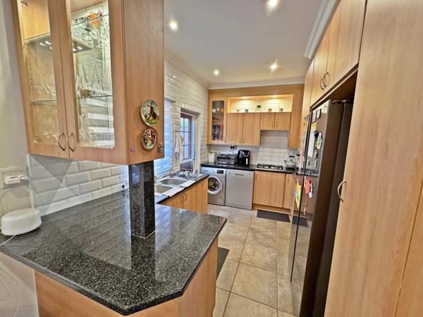 The modern kitchen is beautifully finished with granite countertops, an eye-level oven, and a gas hob, ideal for effortless cooking and entertaining.