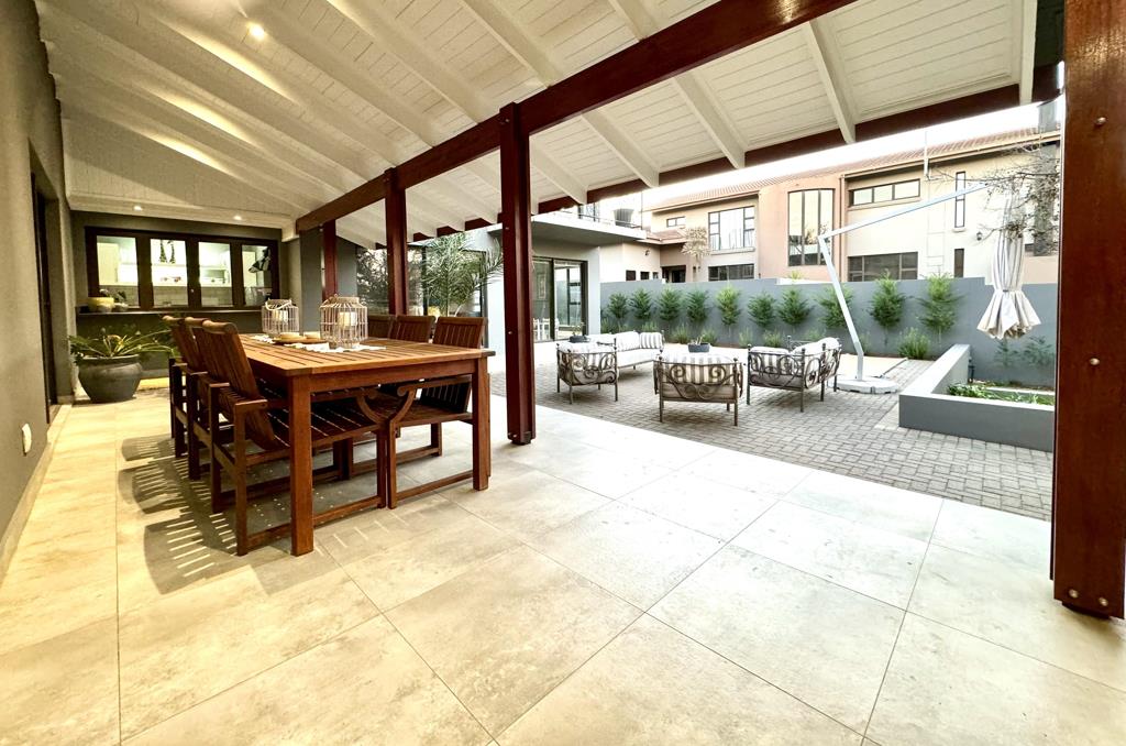 This luxurious family home for sale surely raises the bar concerning cabinetry, architectural design and craftsmanship. Built by one of the most renowned developers, this beautiful home epitomizes the meaning of contemporary living with views over the dam and greenbelt, offering open-plan living to the extreme, where each segment flows freely to the next, with the creative exposed roof beams, vinyl floors and tiles, blending the areas together.