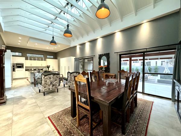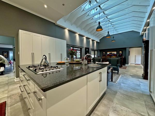 When you set foot in this haven, youll be left breathless and feel welcomed by the double volume open plan living/dining room where you can have endless conversations while the chef is cooking up a storm in a gourmet kitchen, with granite tops, a gas hob, and a magnitude of cabinetry, also boasting a separate scullery and laundry.