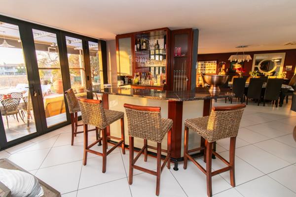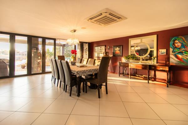 Throughout the home, youll find built-in surround sound and air-conditioning in every room, as well as five flat-screen TVs that are included in the sale. Practical features include a solar geyser, a UPS system to support essential lighting and appliances, three 5000-litre water tanks, a full irrigation system, and four garages with extended workspace, ideal for families needing additional storage or hobby areas. The property also offers private staff accommodation with an en-suite bathroom, adding another layer of convenience to this well-appointed home.
