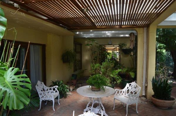 On entering this home you get the feeling of a loving family. The house consists of 5 spacious bedrooms. Real Hollywood style on suite bathroom to the main bedroom. e extra full bathrooms. It has 3 cozy spacious living rooms. The private dining room opens onto a built-in bar and an open-plan kitchen with a pantry and scullery. Underfloor heating in all living areas. a huge entertainment patio leading from the main TV lounge. The garden is a dream with a sparkling swimming pool. Full domestic quarters. A garage and undercover parking for 2 Vehicles.
