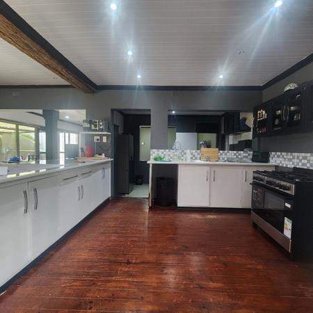 Step inside to a spacious kitchen with built-in cupboards, a scullery, and a gas stove. Just behind the kitchen, youll find a practical laundry room. The kitchen flows seamlessly into the dining area, making everyday living and entertaining easy.