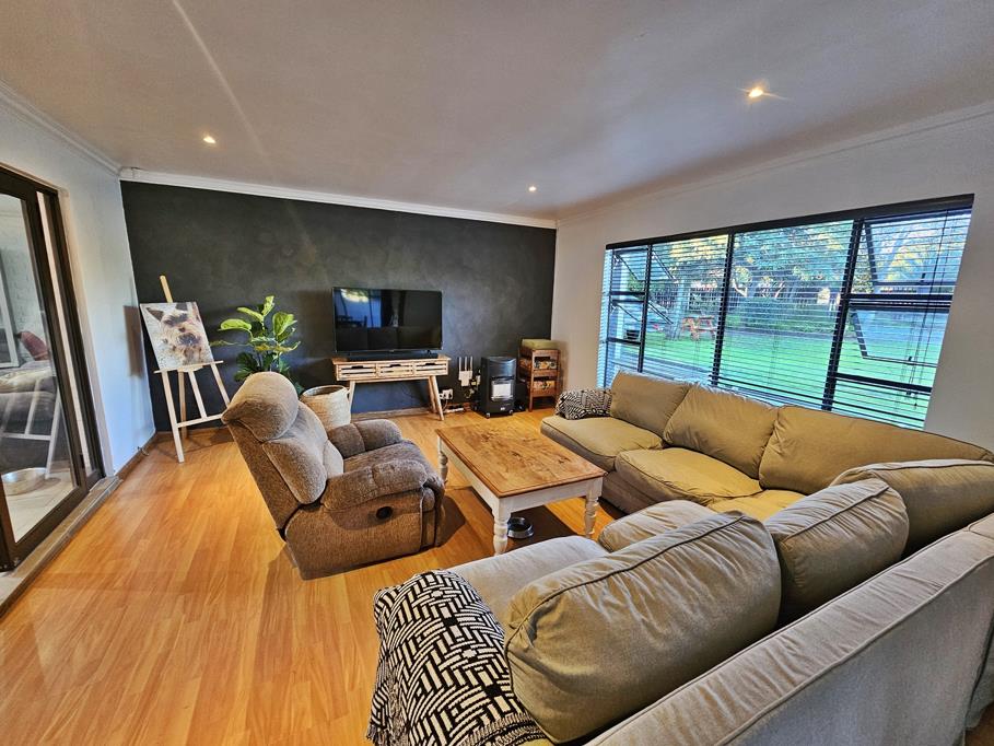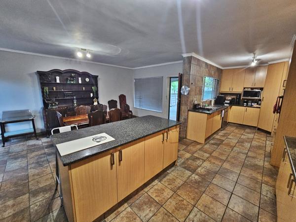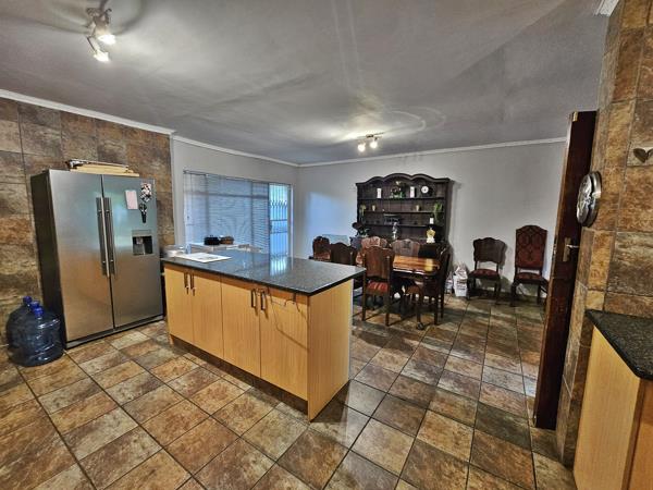 This spacious property offers comfortable family living with plenty of room both inside and out. The home features two living areas and a dining space that flows into the well-equipped kitchen. The kitchen is fitted with built-in cupboards, a centre island, and both an electric and gas stove, making it ideal for everyday cooking and entertaining.