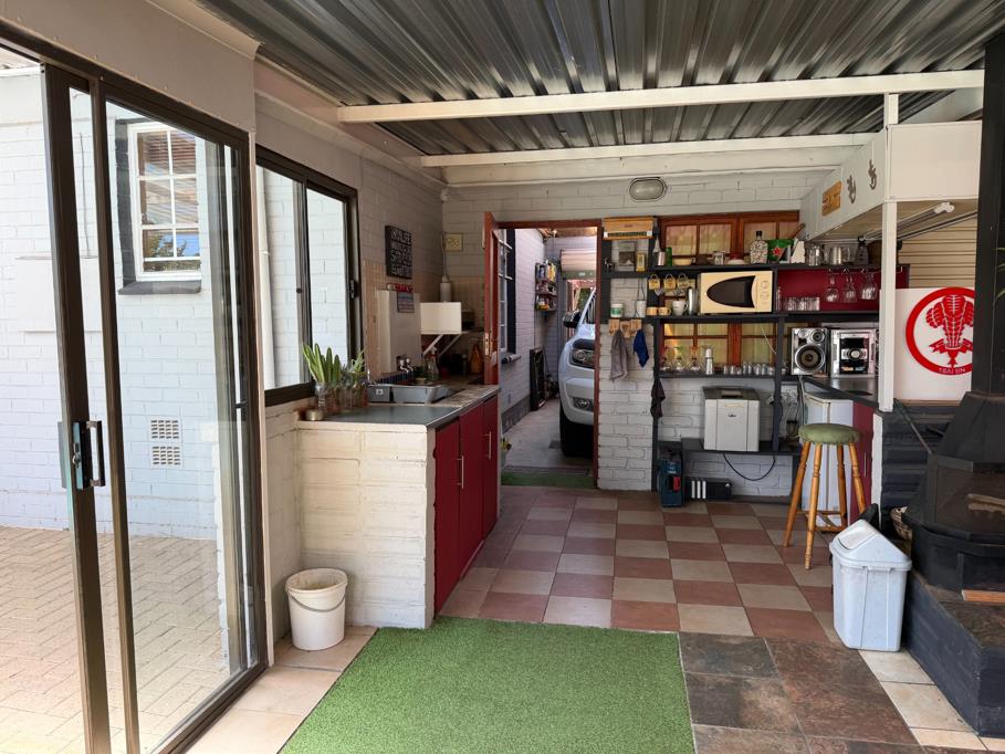 Enter the home through a bright and inviting sunroom that welcomes you with natural light and warmth. From here, the space flows effortlessly into an open plan lounge and dining room area, creating a comfortable setting for both everyday living and entertaining. The lounge features a working fireplace, adding warmth and character during Bloemfonteins cooler winter evenings.