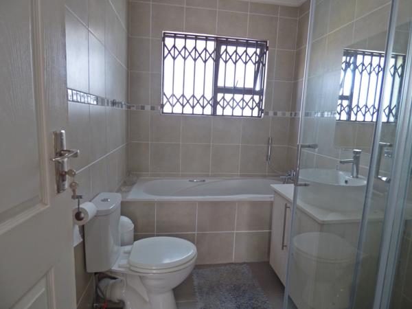 Outside, the property features a spacious and private garden, ideal for outdoor activities and gatherings. The double garage provides secure parking for your vehicles, while additional on-street parking is available for guests. The home is also equipped with a gas geyser, ensuring energy efficiency.