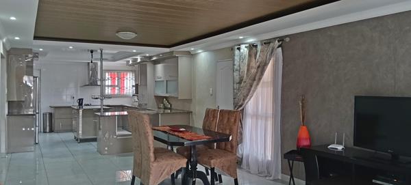This beautifully designed modern 3-bedroom home is located in the renowned Arcata Estate, offering a blend of elegance and practicality. The property features a spacious open-plan living and dining area, fully tiled throughout, creating a seamless flow between spaces.
