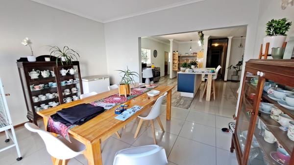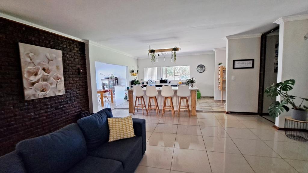 Entertaining is effortless. Sliding doors lead from the dining area to a private braai space, while the heated swimming pool and patio create a relaxed outdoor retreat perfect for gatherings with family and friends.