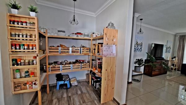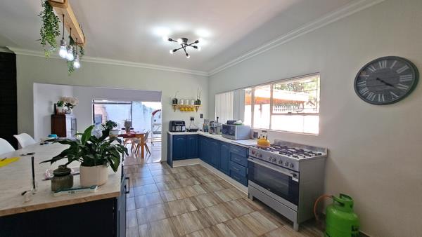 The kitchen is both stylish and functional, featuring generous built-in cupboards, a pantry, gas stove, breakfast nook, and a separate scullery and laundry area to keep the heart of the home neat and organized.
