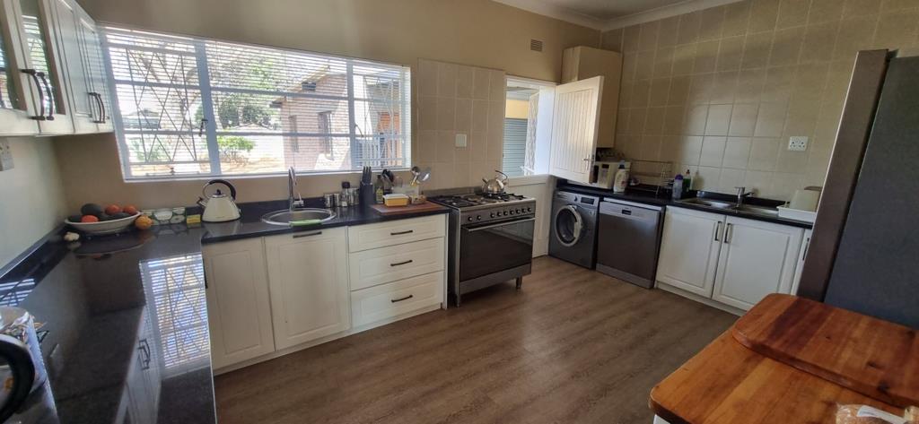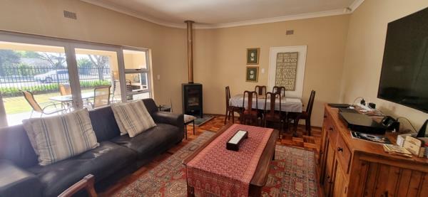 Discover this inviting family home located in the desirable Dan Pienaar suburb of Bloemfontein. The interior boasts a seamless flow, beginning with the spacious living and dining areas featuring classic parquet flooring. A cozy wood-burning stove adds warmth and character, while large sliding glass doors open to an outdoor patio, inviting natural light and extending your living space. The modern kitchen is a highlight, equipped with sleek white shaker-style cabinetry, dark countertops, and contemporary wood-look flooring. It includes a gas range, washing machine, and dishwasher, all complemented by a large window that ensures ample natural light.