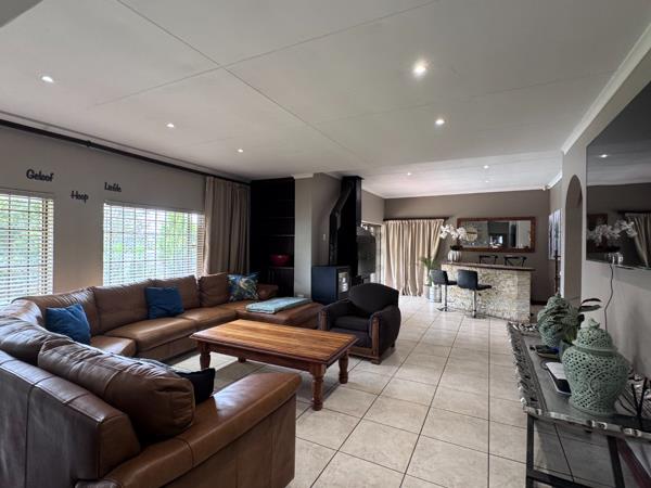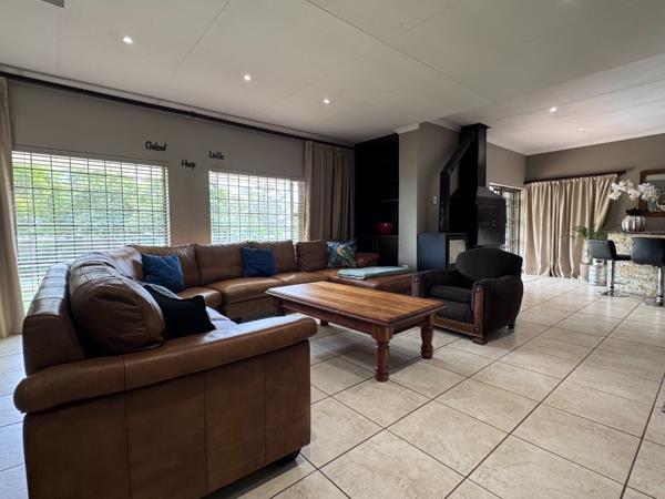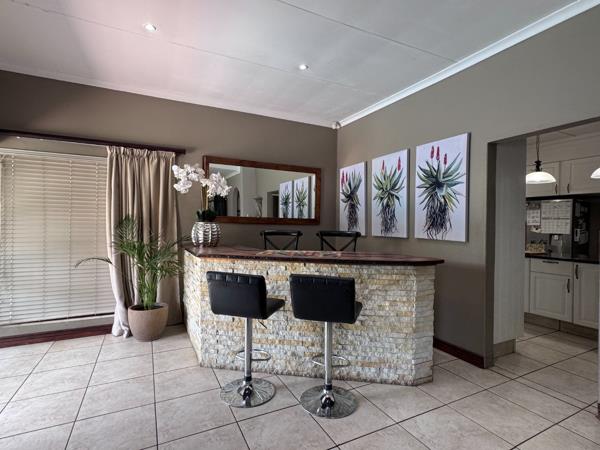 As you enter the home, you are welcomed into living areas that include a comfortable TV room, a dining area, and a dedicated bar space, all designed for relaxed family living and entertaining. The home also features underfloor heating and a built-in braai, creating a warm and inviting atmosphere throughout.