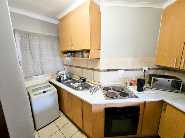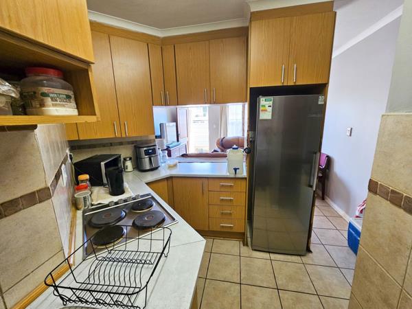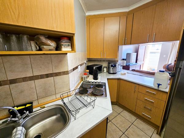The home includes a full bathroom, fully tiled for easy maintenance. The kitchen is thoughtfully designed with a built-in oven and stove, space for a single fridge, and ample cupboards for storage. A convenient breakfast nook opens into the open plan living room, creating a warm and inviting space for everyday living and entertaining.