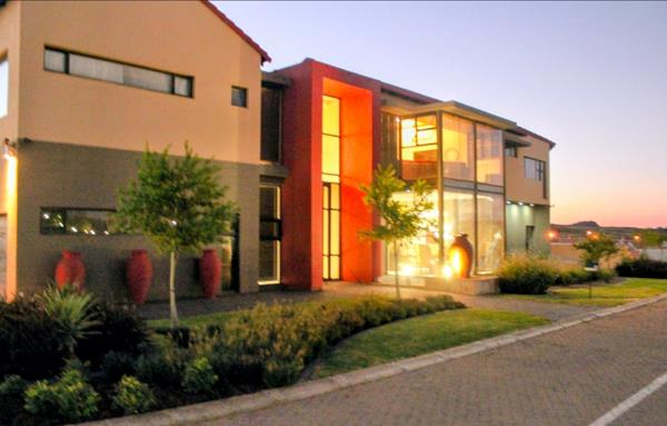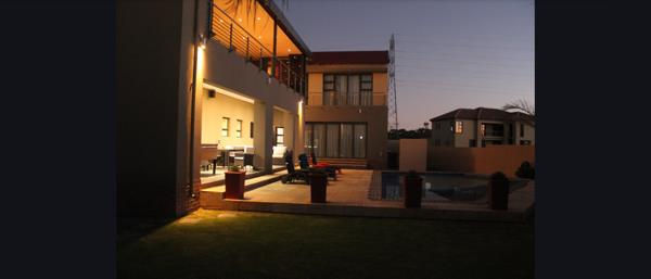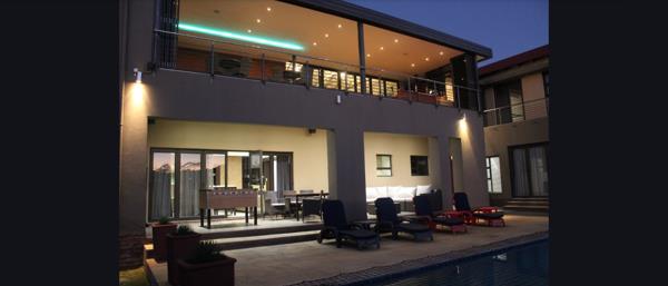 Left of staircase: main lounge, fully fitted gym with its own entertainment area kitchenette and braai, and luxurious master bedroom suite.