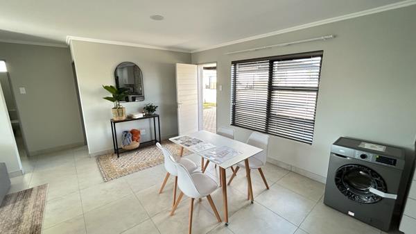 The open-plan kitchen, dining, and living area creates a seamless flow throughout the home, enhanced by clean finishes and a contemporary feel. Designed with practicality in mind, each unit includes energy-efficient features such as a gas geyser to help keep electricity costs down, along with a JoJo tank and pump for added water security.