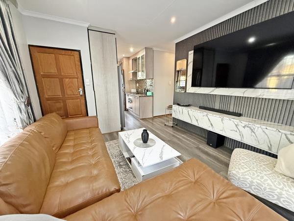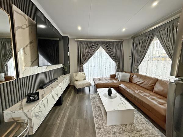 The home also features a lounge area with an attractive TV stand design that adds a stylish touch to the living space. There are three bedrooms that provide enough room for the family, along with two bathrooms for added convenience.
