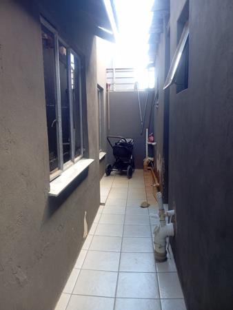 The main house is fully tiled throughout and features 3 bedrooms, with 2 bedrooms fitted with built-in cupboards. There is 1 bathroom servicing the home. The living area offers an open-plan lounge and kitchen, creating a spacious and welcoming atmosphere. The kitchen is fitted with built-in cupboards, a hob, extractor fan, and an under-counter oven, making it both functional and modern.