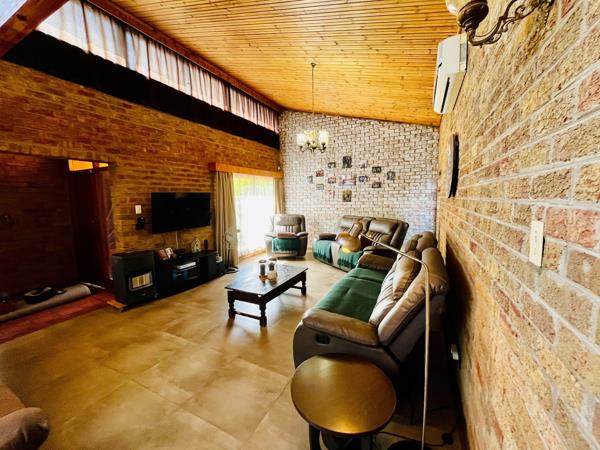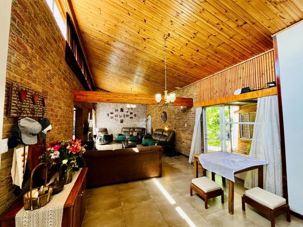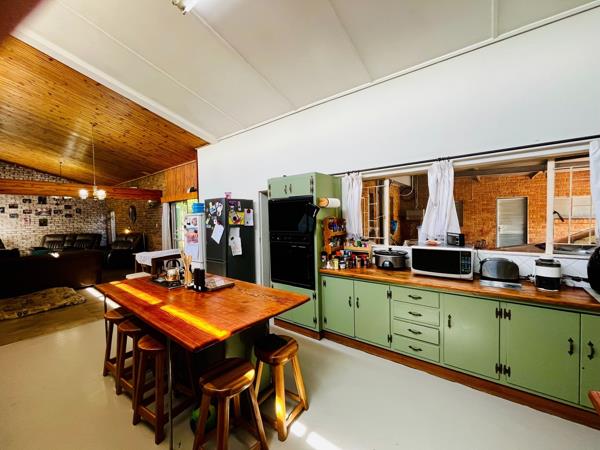 A dining room opening onto a covered patio with built-in braaiperfect for student gatherings