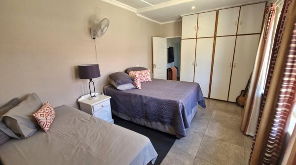 Additional features include prepaid utilities, a single carport, double shade-net parking, a borehole, a built-in braai, a storeroom, ample secure parking, and a selection of household items.