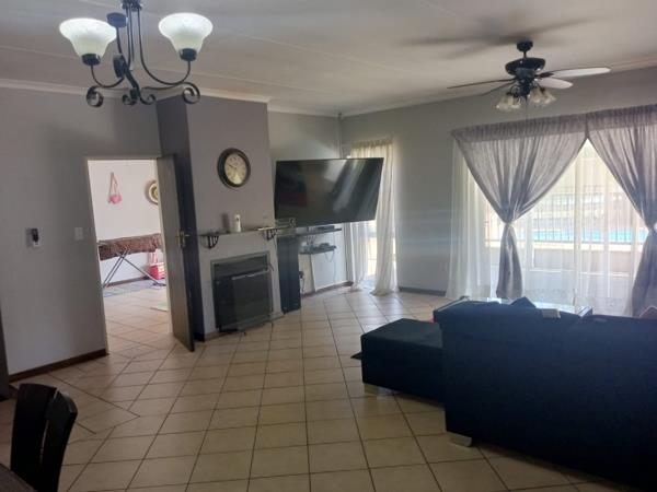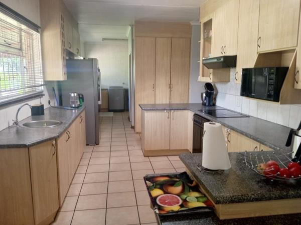 This spacious 4-bedroom, 2-bathroom family residence in Universitas Ridge offers a refined suburban lifestyle with generous living areas and excellent entertainment features. The interior boasts a welcoming lounge with a fireplace and tiled flooring, seamlessly flowing into a formal dining room. The well-designed kitchen is fitted with ample wood-look cabinetry, granite-style countertops, a built-in hob and oven, microwave, and a separate scullerylaundry and a pantry for added convenience.