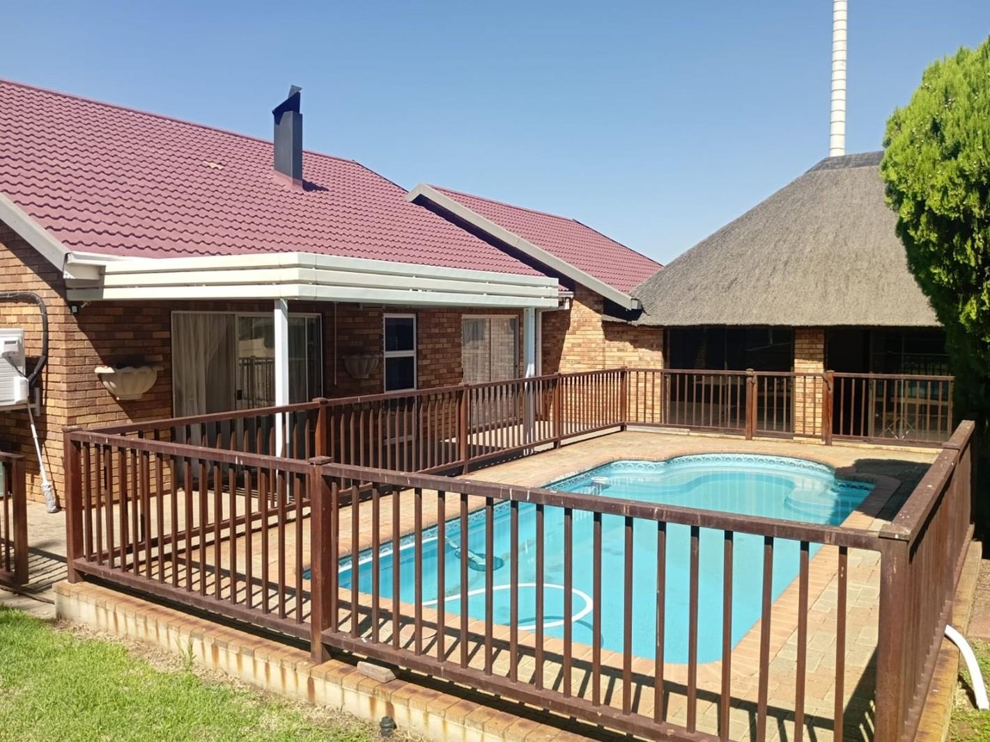 Outdoors, the property is ideal for entertaining, featuring a private swimming pool with a safety fence, a covered entertainment area, a traditional lapa, and a built-in braai. Set on a substantial 1,200 m² erf with an approximate floor area of 320 m², the home presents a durable brick faade complemented by tiled roofing and a thatched lapa section.