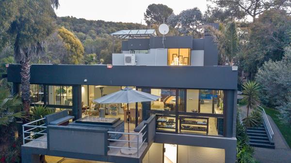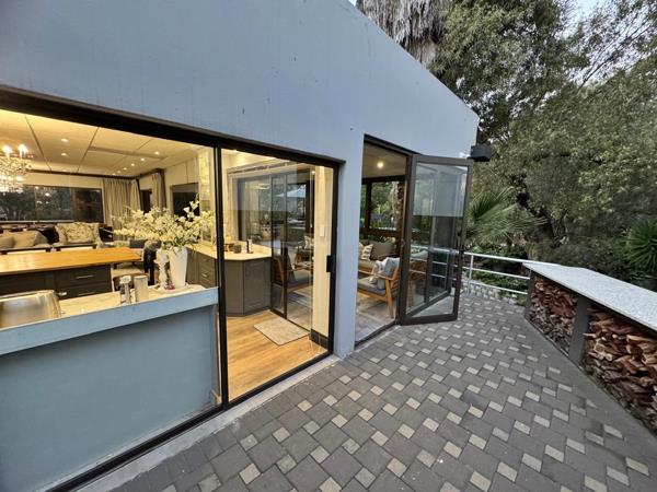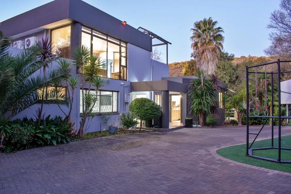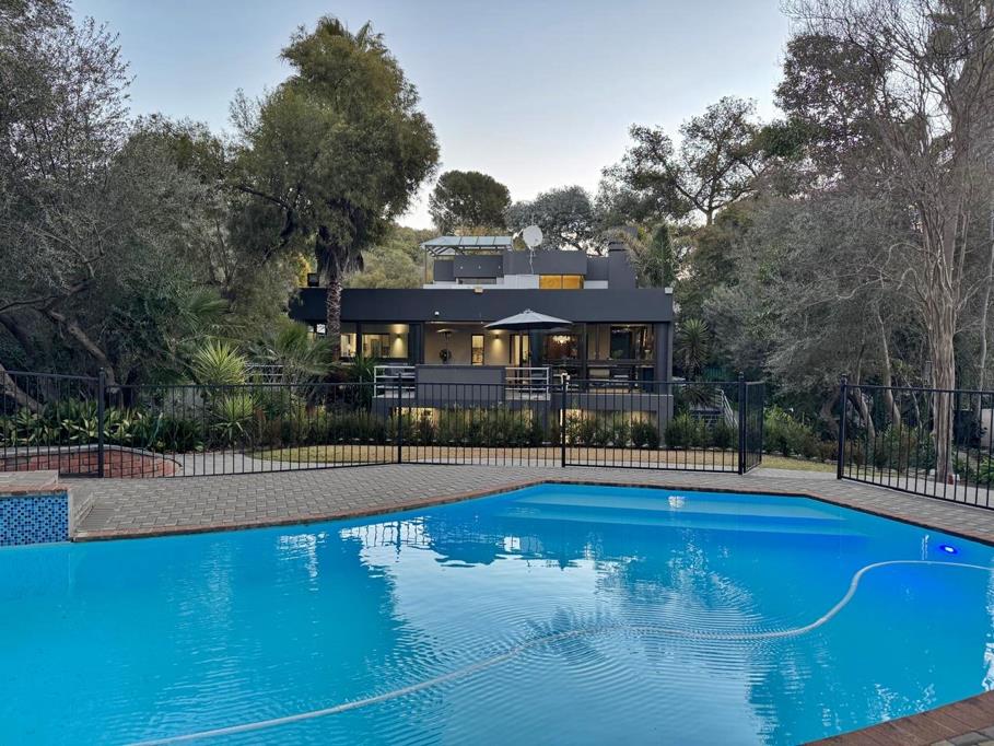 The outdoor spaces are designed for unparalleled entertainment and leisure. A patio equipped with a built-in braai and pizza oven creates the perfect setting for unforgettable evenings, while the manicured garden surrounds a sparkling swimming pool, offering a tranquil oasis. An outdoor cinema with a large screen promises magical movie nights under the stars, and a dedicated braai room provides sweeping views of Naval Hill. With the property bordering a greenbelt, residents are often treated to the enchanting sight of grazing bucks and wildebeest, enhancing the homes connection to nature.
