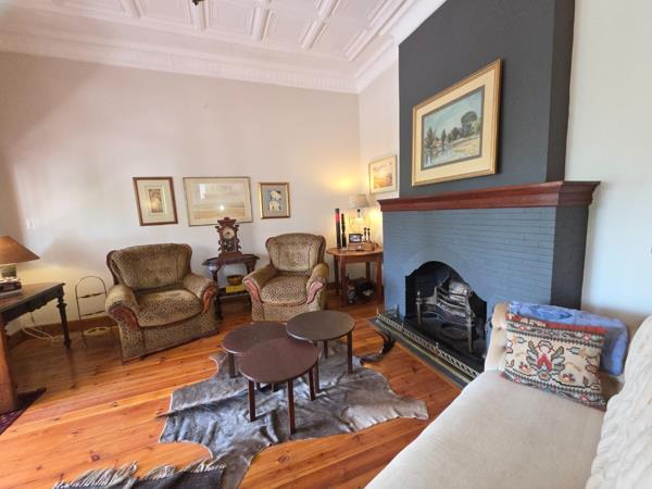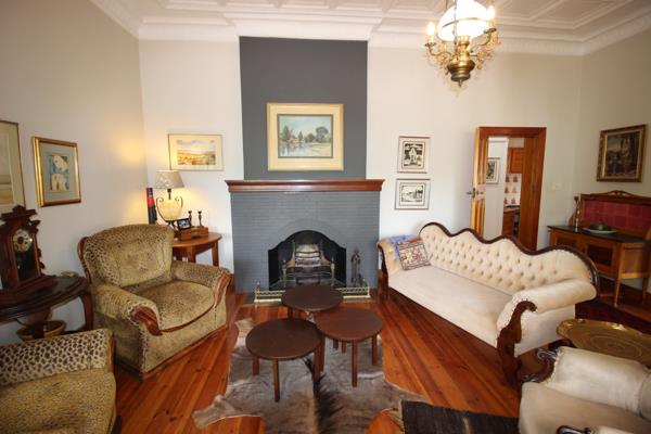 A gracious lounge flowing into a dining room enriched with original lead-glass windows and its own fireplace.