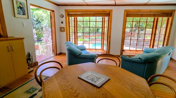The garden is a true showstopper: a sparkling pool, outdoor braai, wine cellar, garden shed, and stone walkways. With three entertainment areas, including two undercover, its perfect for gatherings any time of year.