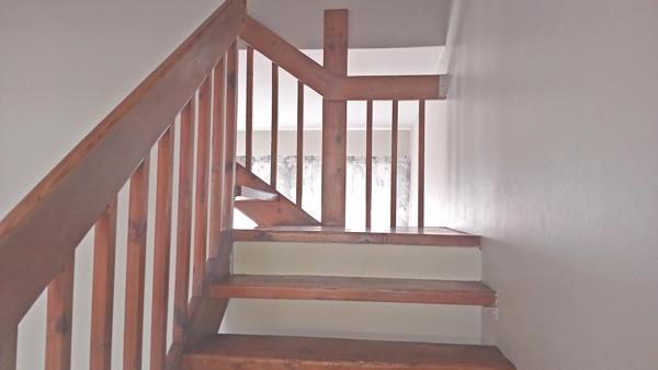Upstairs, youll find two spacious bedrooms, both tiled and fitted with built-in cupboards. A full bathroom caters to both bedrooms, ensuring comfort for the whole family.