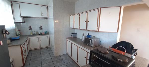 The kitchen offers enough cupboard space and is also open plan with the dining area.