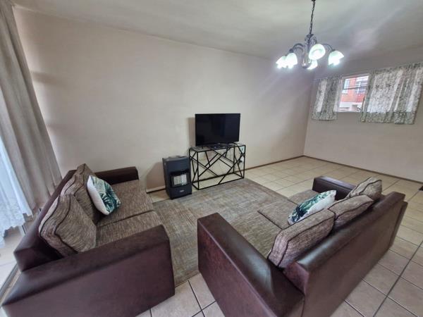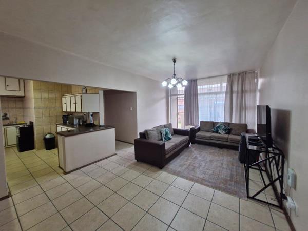 Sunny 2 bedroom flat situated in Bethlehem Central within walking distance from schools. Very neat and tidy with a spacious open plan lounge, and doors opening onto a small porch and large private courtyard. North facing bedrooms with carpets and built in cupboards. Neatly tiled floors in the open plan kitchen and bathroom. Parking in a single garage. Call me for viewing.