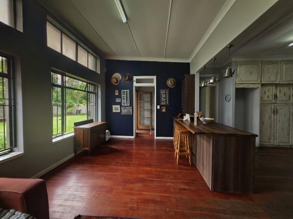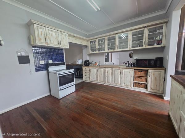 The open-plan design connects the living room and dining area. The modern kitchen offers neat wooden flooring, creating a warm atmosphere for family gatherings. The kitchen offers a separate scullery with connections for the washing machines, etc.