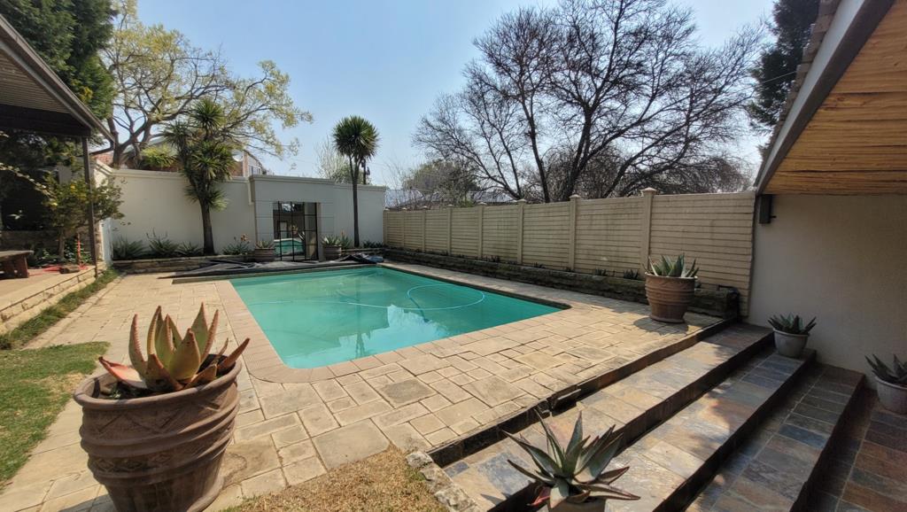 Downstairs experience the easy flow from the formal lounge with a gas fireplace, open plan dining room, to the kitchen and study with doors opening onto the patio and garden filled with roses. The kitchen offers a new oven with gas and electric hob with a separate scullery. The TV room offers an anthracite stove and projector screen for movie nights. A newly build outside braai area leads to the pool. The top floor boasts 4 bedrooms and 2 full bathrooms with underfloor heating. Enjoy your morning coffee on the balcony from the main bedroom.