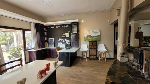 Leapfrog proudly introduces this lovely open plan double storey home, situated on a large corner stand in Eureka. It has a warm and homely atmosphere which welcomes you from the spacious entrance, though to the braai and pool area. Large separate offices, fully fitted with quality office furniture and a telephone system.