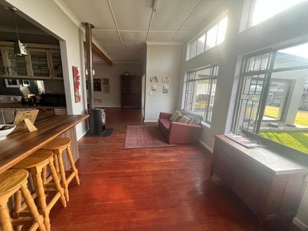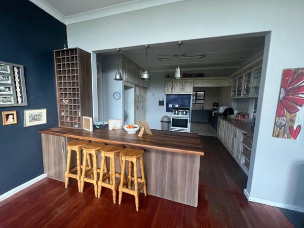 The interior features a modern open-plan kitchen, a separate scullery, a spacious dining area that flows seamlessly into the build-in braai room.
