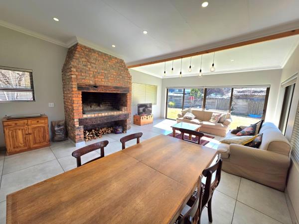 The braai room is very spacious and north facing. The sliding doors is also leading to the garden area.