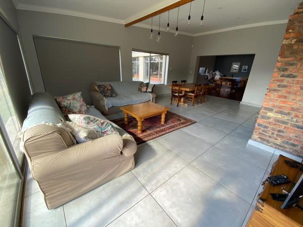 The fully fenced yard offers remote access, a large garden, and plenty of safe space for children and pets to play. Step inside to discover a warm and inviting atmosphere with generous living areas including a large dining room and an open-plan, north-facing indoor braai area with sliding doors that flow seamlessly into the garden.