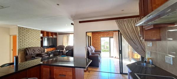 The living area and braai room is open plan with the kitchen.