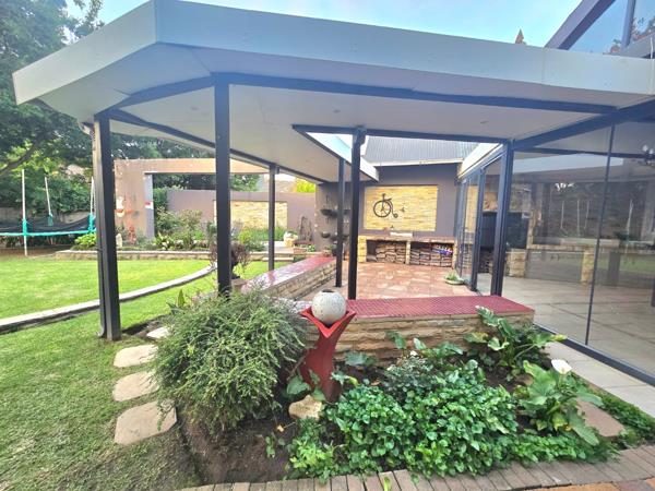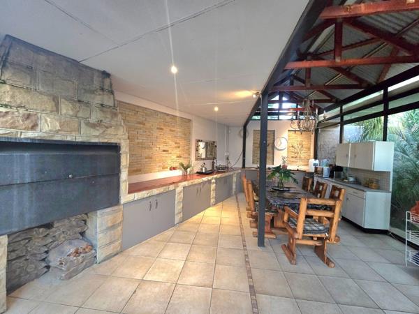 The tv room also leads to the back garden with the most perfect entertainment area that also includes a built-in braai and fold-able doors.