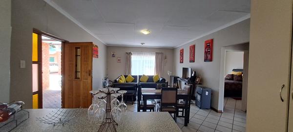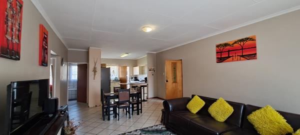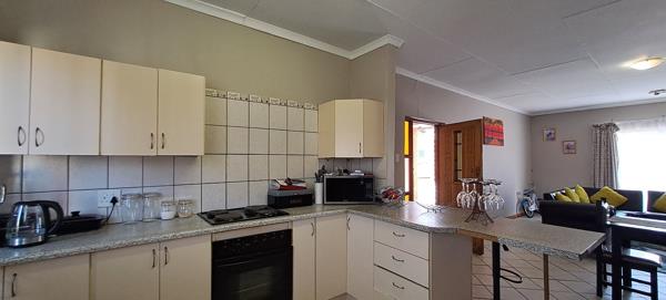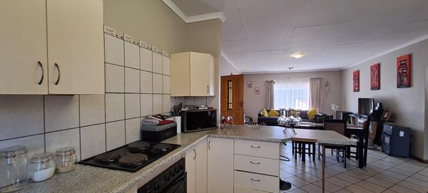 The living area is open plan with the kitchen that offers ample cupboard space, an under counter oven and hob.