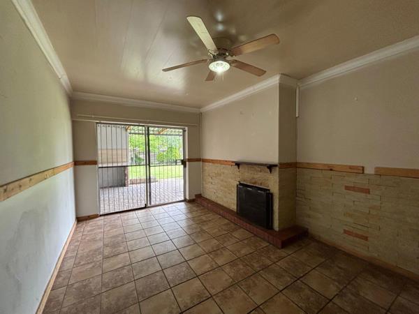 Dining Room with a built-in fireplace, opening onto a covered braai area perfect for indoor-outdoor entertaining.