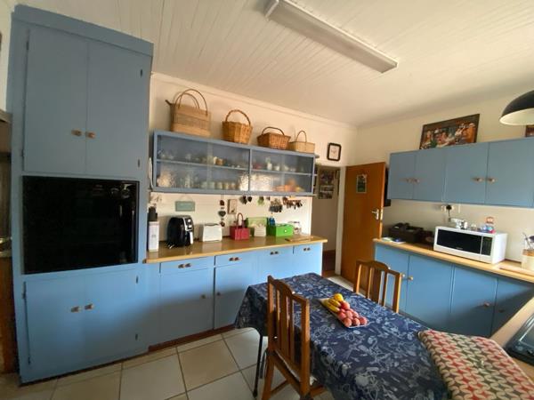 The main house features a spacious open-plan TV and dining room with beautiful natural light. The semiopen-plan kitchen offers ample cupboard space, a built-in stove, and a separate scullery, while the adjacent laundry room adds extra convenience.