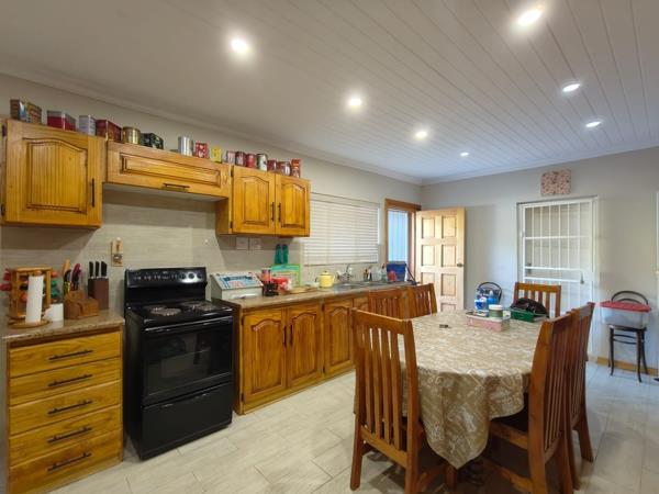 The open-plan dining and sitting room flows seamlessly, creating a warm and inviting space for family living and entertaining. A separate TV room with a built-in braai adds to the homes excellent entertainment appeal.