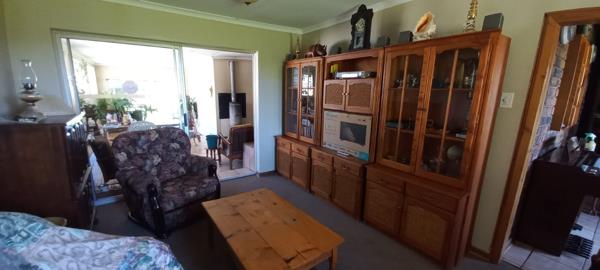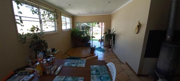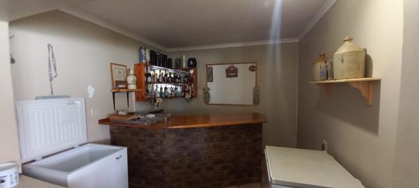 The tv room with carpet flooring leads to the spacious braai room with tile flooring, built-in braai, built-in bar counter and jacuzzi.