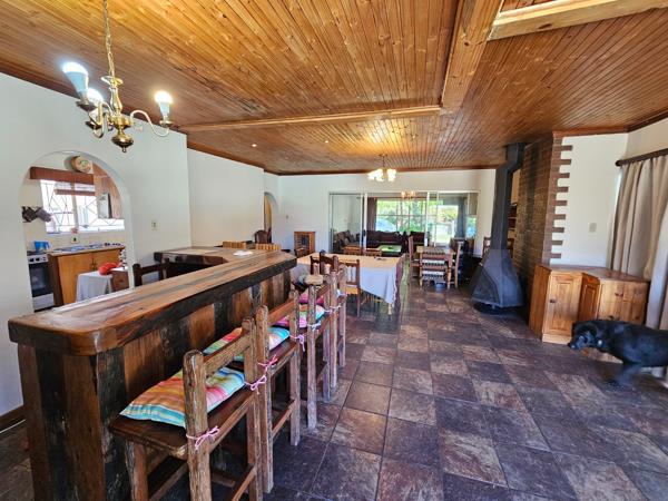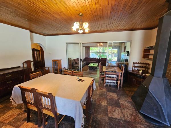 The lounge and braai room is combined and open plan and offers a built-in braai and fireplace.